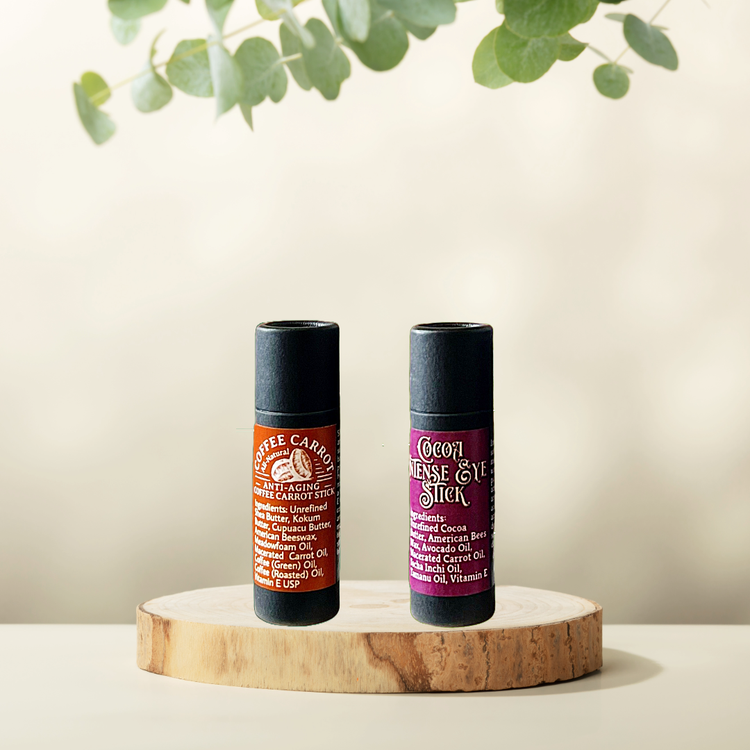 Set includes a full size Coffee Carrot Serum Stick and a full size Cocoa Intense Eye Serum Stick